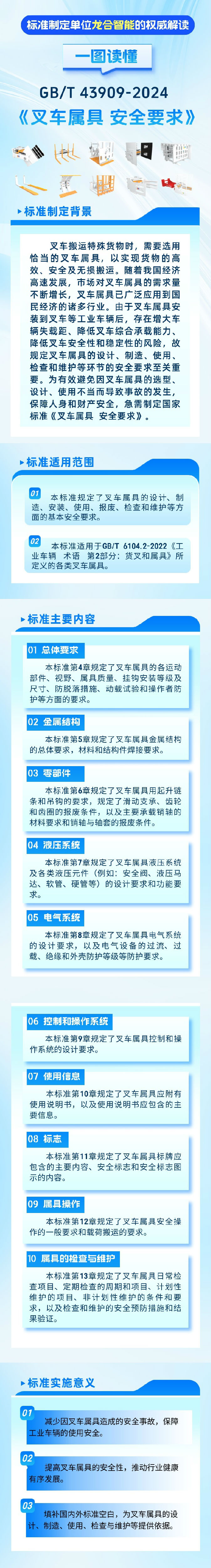 龍合智能裝備制造有限公司自2017年3月開始擔(dān)任屬具工作組組長(zhǎng)單位以來(lái),在上級(jí)標(biāo)委會(huì)的指導(dǎo)下、在全體組員的共同努力下,卓有成效地開展了許多工作,為促進(jìn)我國(guó)工業(yè)車輛標(biāo)準(zhǔn)體系建設(shè)和促進(jìn)行業(yè)整體技術(shù)進(jìn)步做出了積極貢獻(xiàn)。截至目前,我國(guó)工業(yè)車輛屬具專業(yè)領(lǐng)域共有現(xiàn)行有效標(biāo)準(zhǔn)20項(xiàng)(其中國(guó)家標(biāo)準(zhǔn)3項(xiàng),行業(yè)標(biāo)準(zhǔn)17項(xiàng));已完成報(bào)批待批準(zhǔn)的行業(yè)標(biāo)準(zhǔn)7項(xiàng);在研的屬具標(biāo)準(zhǔn)制修訂計(jì)劃項(xiàng)目共8項(xiàng)(其中國(guó)家標(biāo)準(zhǔn)2項(xiàng)、行業(yè)標(biāo)準(zhǔn)6項(xiàng))。